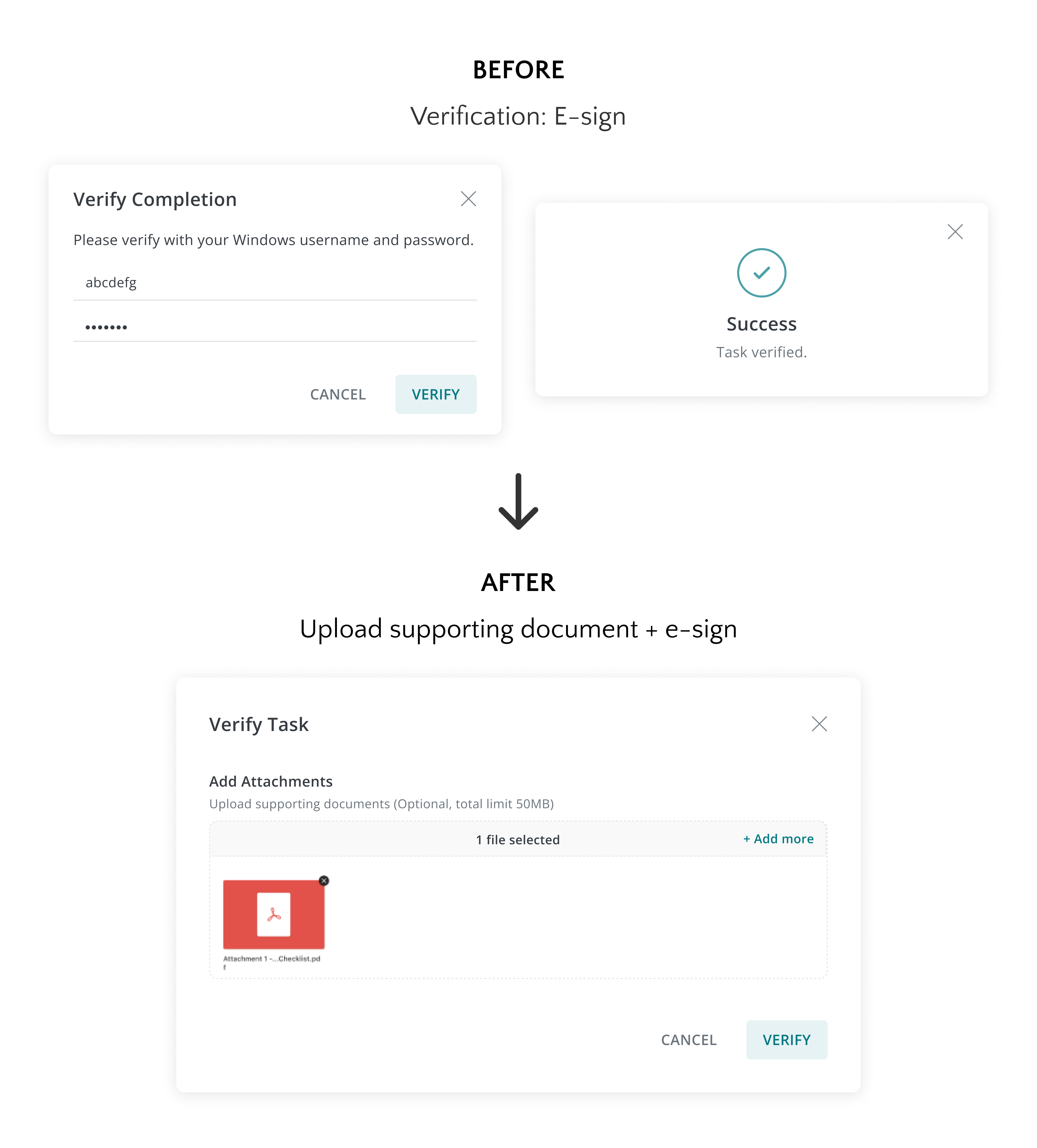 Instructors can upload supporting documents in addition to e-signing as part of the task verification process. Providing these documents will allow convenient viewing of records for auditing purposes.