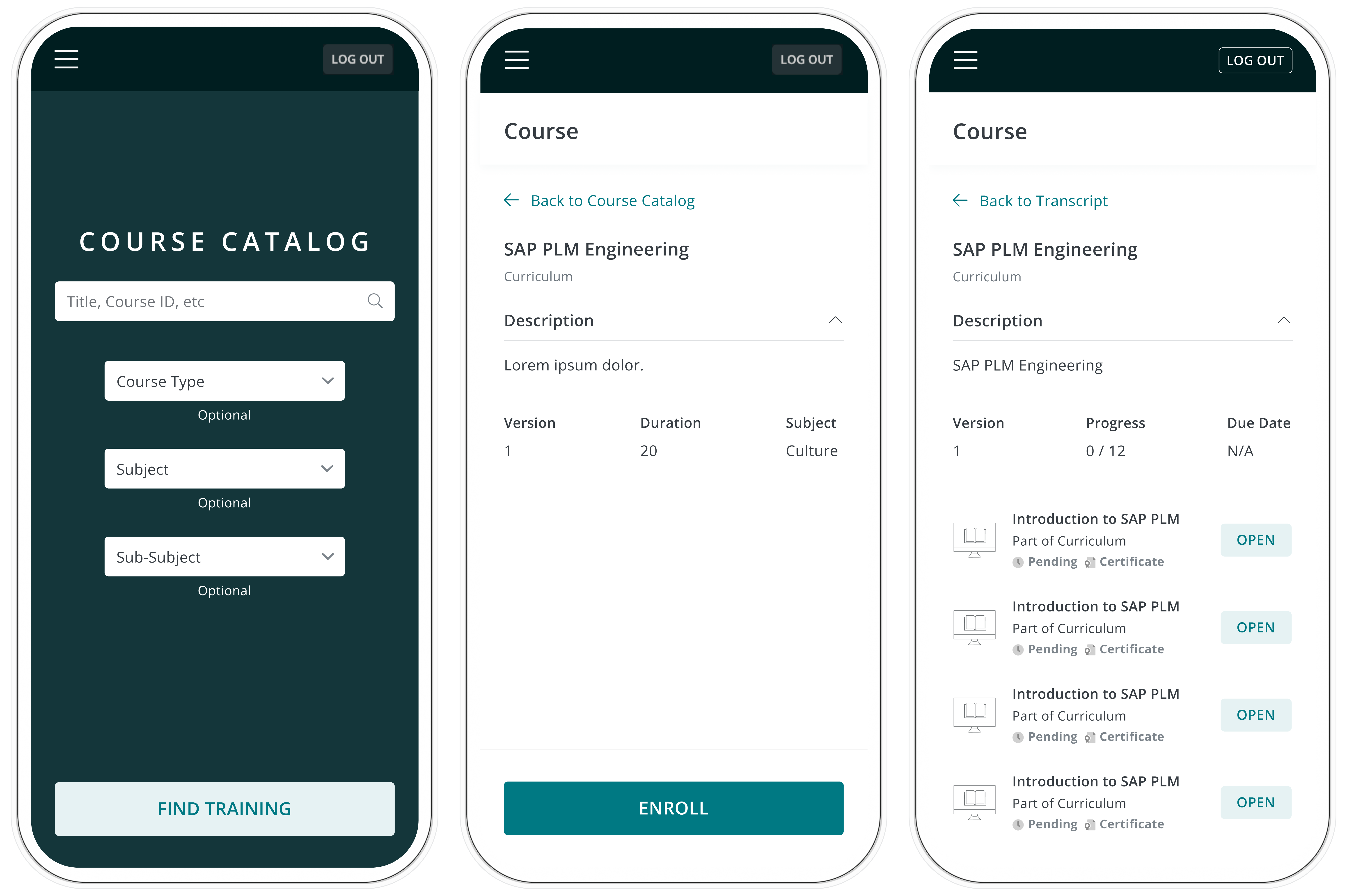 With the defined requirements, mobile design guidelines, and feedback in mind, I made some major design improvements to the LMS modules:
